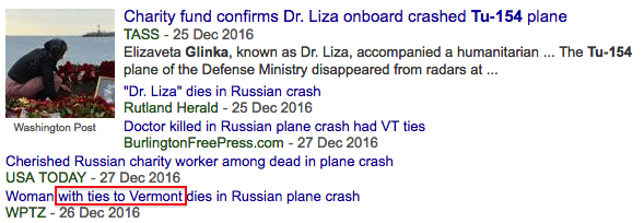 Tu-154 crash, Dr Glinka - Cabot, Vermont. She was arguably the most well-known victim.