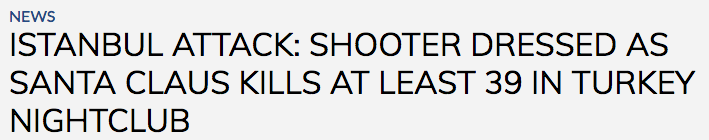 The shooting was also initially sold as being carried out by a terrorist dressed as Santa Claus, yet there is little evidence to support this belief? A white suit is not standard attire for Santa. Have they got folk believing in Santa Claus, wink-wink?