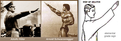 Arnie's father (former Police chief, Gustav) joined the "occult resonant" Nazi Party (when it was still illegal - March 1, 1938), and was a member of the SA (Sturmabteilung or stormtroopers), the brown-shirted Nazi paramilitary wing, made up of the most enthusiastic of Hitler’s followers.