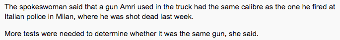 We've got a Pakistani captured/arrested at the scene, no hang on, we've got a (known criminal risk and tracked for months) Tunisian who escaped, and left his ISIS/ISIL calling card! So, who apprehended the Pakistani at the scene, and why? Was he just a random Pakistani, and who just happened to be near the scene and truck? None of this makes any sort of sense, not even remotely. The media in Germany is really not worth listening to, and it has been this way for quite some time.