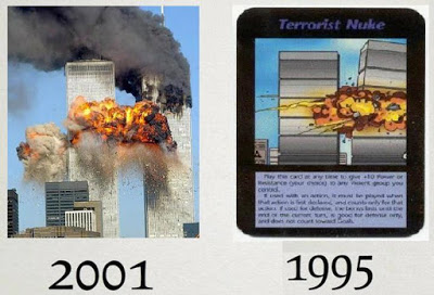 I've already seen references to the Ambassador shooting and the above (Illuminati) card.
