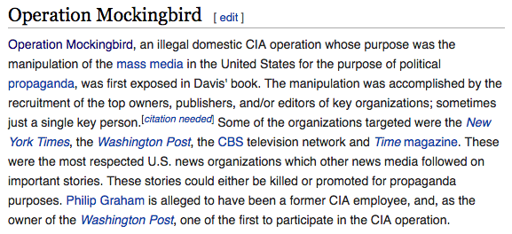 The Washington (Fake News) Post and CIA Operation Mockingbird