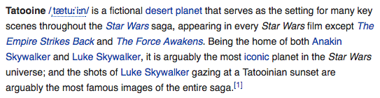 Darth Vader to (Tatooine) Luke - "...I am your father"