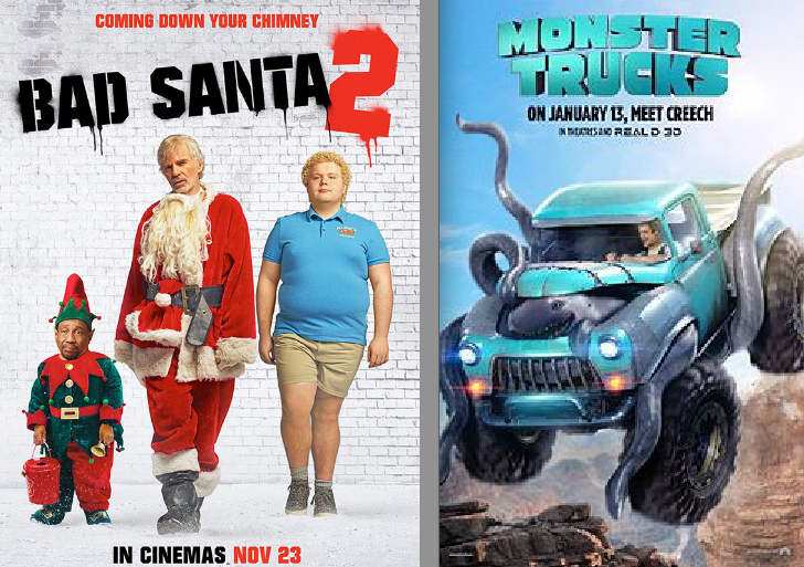 2016 - "Bad Santa 2" (released from 23rd Nov) and "Monster Trucks" (released from 21st Dec). Monster Trucks would first play in France, where the "Tunisian infused" Nice truck terror happened.