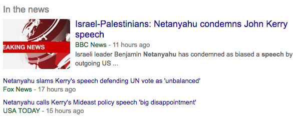 Israel (predictably) reacts very negatively to Kerry's "two-state" speech.