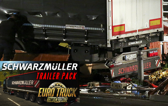 What's that - some kind of black pyramid? A "Schwarzmuller" (black miller) name on the truck's rear.
