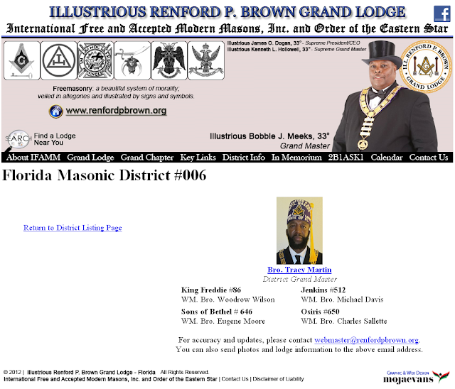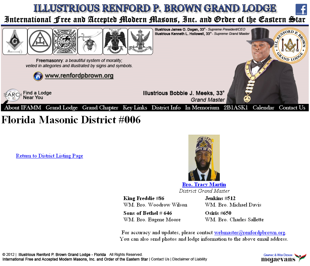 This 'now defunct' listing/link cites him as District Grand Master.