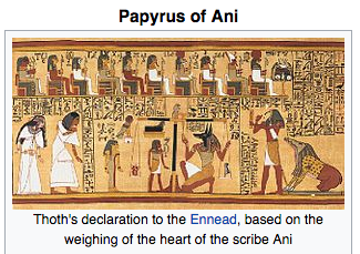 Hermes/Thoth of the green/emerald table(t) - the scribe of judgement via Egyptian Ani. The weighing of the heart (judgement) via Ma'at. Ani (Annie) and Hearts (CPR).