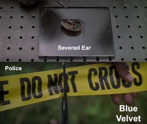 The Blue Velvet shots below are sequential - ear to police and cutting scissors.