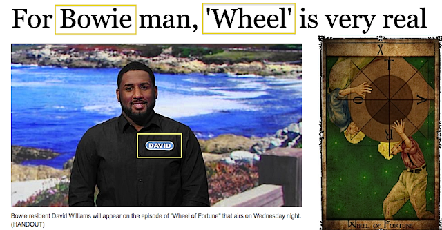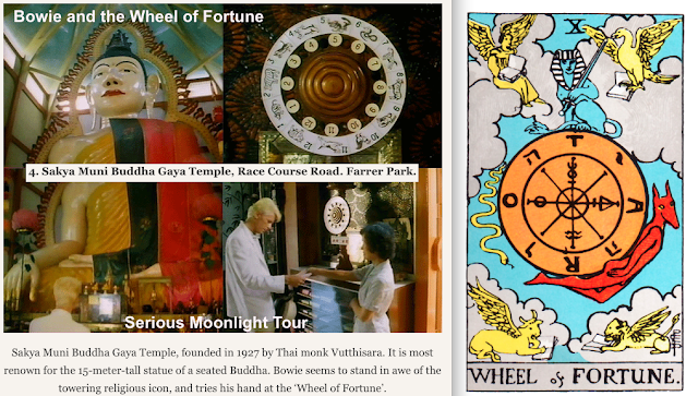 "Wheel of Fortune" via a David (black star) Bowie man - news item a few weeks after Bowie's actual death. (link) Bowie, is regularly referenced in the film "24 Hour Party People" - mainly via Ian "Hanged Man" Curtis. WB Yeats - another of Bulwer 'dweller' Lytton's proteges (with Crowley etc) for the Isis/Urania Temple. "24 Hour Party People" - The Wheel of Fortune.