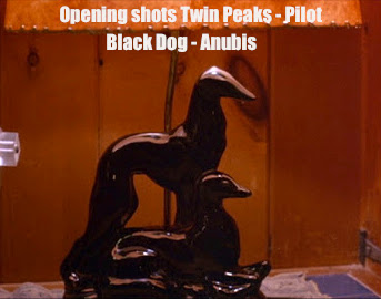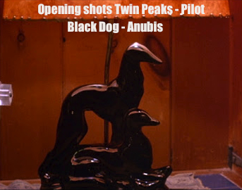 Black Dog - seen with (Black Lodge linked) Josie. Just before Laura's body is found. See also "The Black Dog Runs At Night". The very first actual shot is 'ducks on a lake' - ducks - for the "feather" (Ma'at).