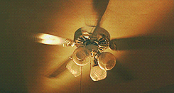 "The man under the fan is looking for the book with the pages torn-out."