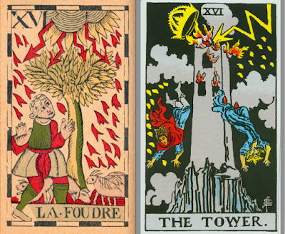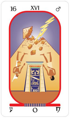 The Lightning-struck Tower (Egyptian tarot). Struck on the crown/apex/peak.
