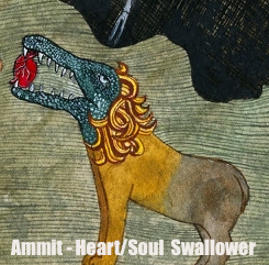 Those who passed the test were sent to the afterlife paradise, those who failed had their hearts (souls) swallowed by the beast Ammit (see above far right, and below), and were recast back into the material world (mortal sphere). In Egyptian belief the heart was synonymous with the soul. Underworld Beast Bob to Cooper: "He can't ask for your soul, I will take his".
