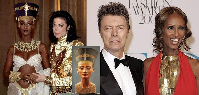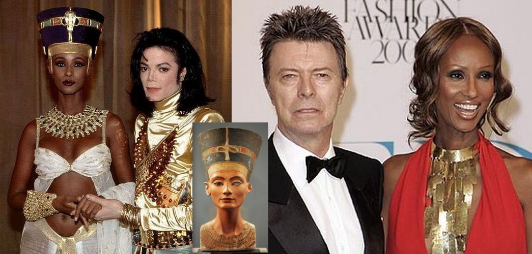 Jackson with "Isis" wings. Bowie's wife Iman, played Egyptian Queen 'Nefertiti' - Remember the Time. Iman, at aged four, was sent to boarding school in Egypt, where she spent most of her childhood and adolescence.