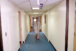 He left the bloodstains on the carpet