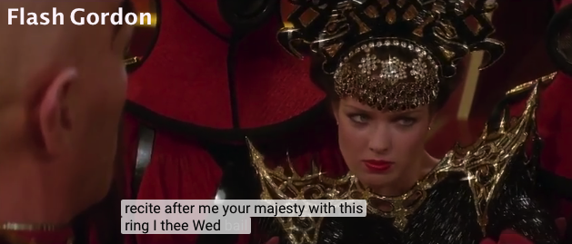 (the very next line =) Flash Gordon: "Dale, what a damn shame." Dale: Don't take the ring Laura, don't take the ring. (Twin Peaks). Don't take the ring Dale, don't take the ring. And literally! (Flash Gordon).