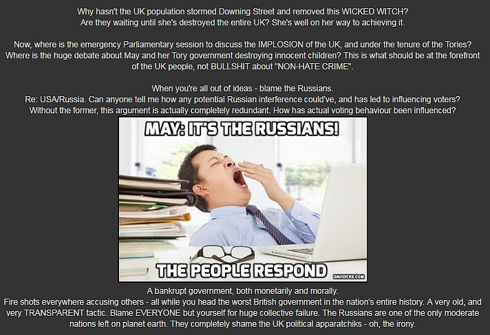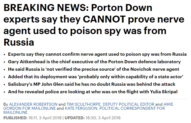 Anyway, I wouldn't be surprised if the Tory (and elite) claims about Russia/Skripal publicly FALL APART!