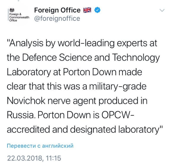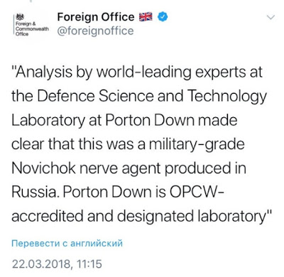 The UK Foreign Office have DELETED their March 15th tweet which supported this. Destined for Orwell's memory hole?