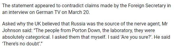 Johnson DID claim that there was "NO DOUBT" (re: the source being Russia) - this LIAR (& his govt) is now backtracking.