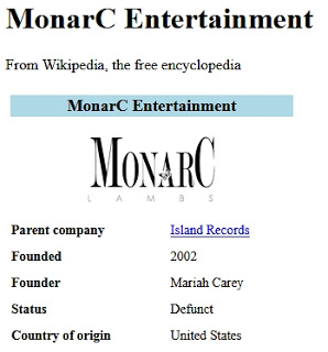 Notice how Mariah 'MonarCh' Carey's label shows MonarC LAMBS - and via Island Records.