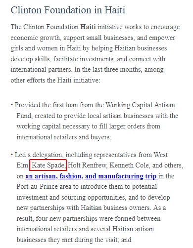 WTH? Haiti, Clinton Foundation, and Kate Spade! Wow. (Link)
