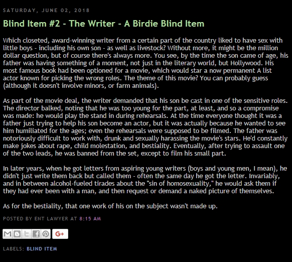 See 'Cinema of Sodomy' post, 2016...or the latter 'Hollywood Jewish Gay/Paedo Mafia' post, 2017.