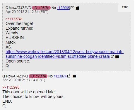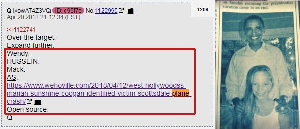 The Scottsdale, AZ. (West Hollywood linked) plane crash was on 9th April. Mariah Sunshine Coogan.