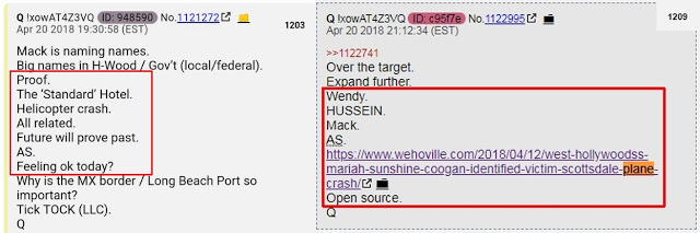 Scottsdale is where that April plane crash occurred, the one Q cited. The Scottsdale, Arizona (West Hollywood linked) plane crash was 9th April. It crashed shortly after take-off. Mariah "Instagram" Sunshine Coogan. The plane was bound for Vegas.