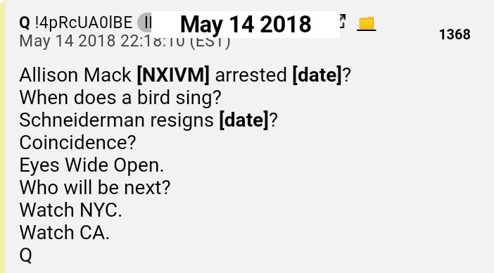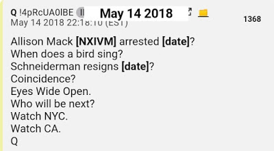 "Who will be next?" Weinstein just got arrested in NYC too. Did (Bronfman/Raniere linked) NXIVM Mack name both?