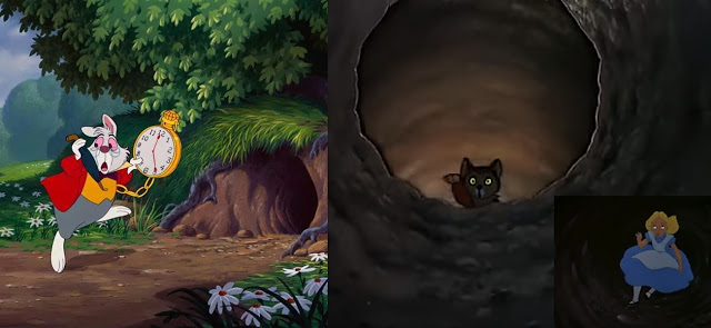 Disney. Alice and time. Tumble-down the (sexually resonant) white rabbit dirt hole - wave goodbye to your pussy, Alice.