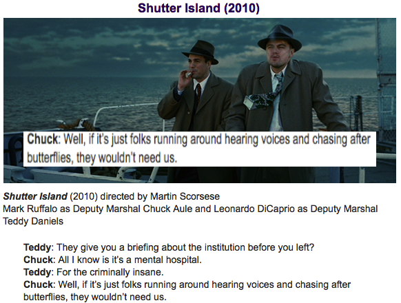 Jodie 'butterfly/Lolita' Foster via De Niro, and Martin - Shutter 'butterfly' Island/Taxi 'butterfly' Driver - Scorsese.