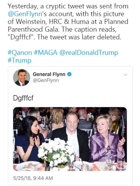 Flynn's CODE. The tweet was dropped on the same day as Weinstein's arrest.