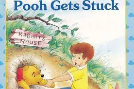 Poo(h) gets stuck/jammed in the sexually resonant rabbit hole. Just like (stcky) Gloop stuck in Willy's chocolate pipe (Wonka/Wanka).