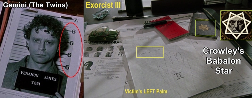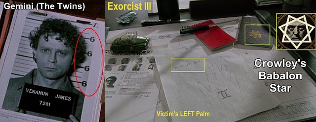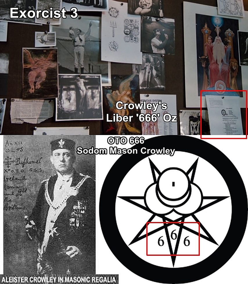 Hollywood OTO. Left-hand path, 666 Crowley via Exorcist III. (There's Eliphas 'Baphomet' Levi imagery too.)