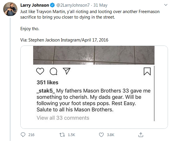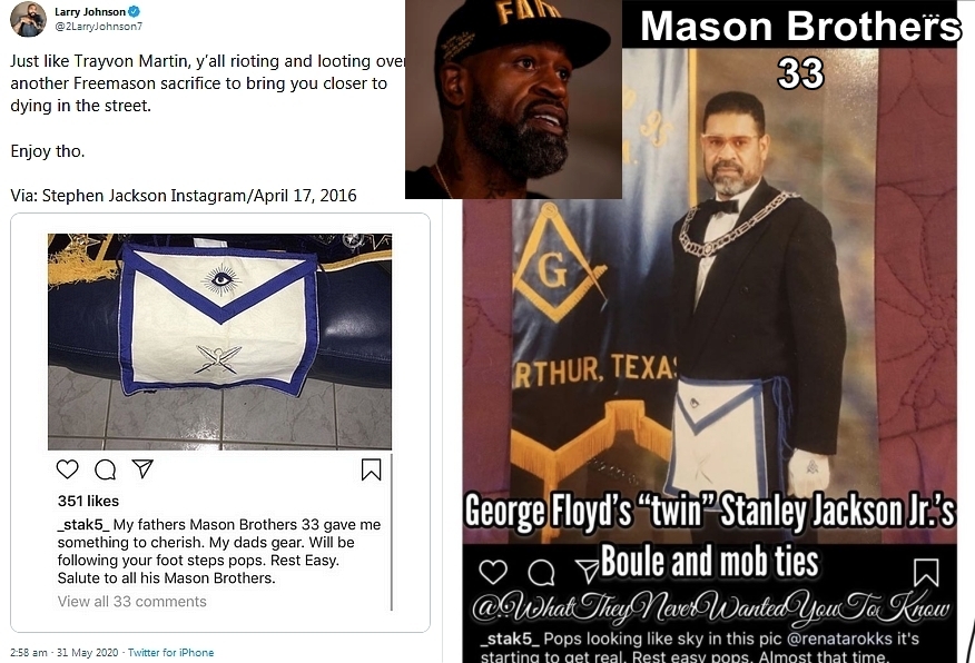 Tracy 'masonic Grand Master' Martin. Oh, look. It's George Floyd's 'MASONIC TWIN' - Stephen 'Freemason' Jackson.