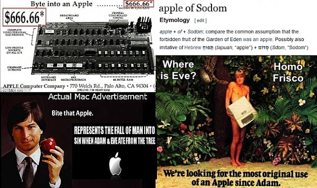 Forbidden FRUIT(S). A 'fruit' - slang, as in a homosexual. Rainbow Apple, also see IBM's 'Gay Song' (link).