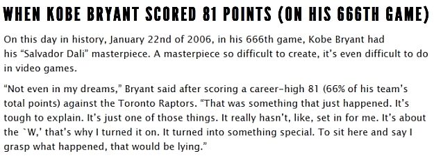 Game #666. A career-high score of 81. 66% of his team's total points. NBA's 2nd highest points score in history.