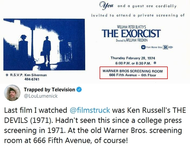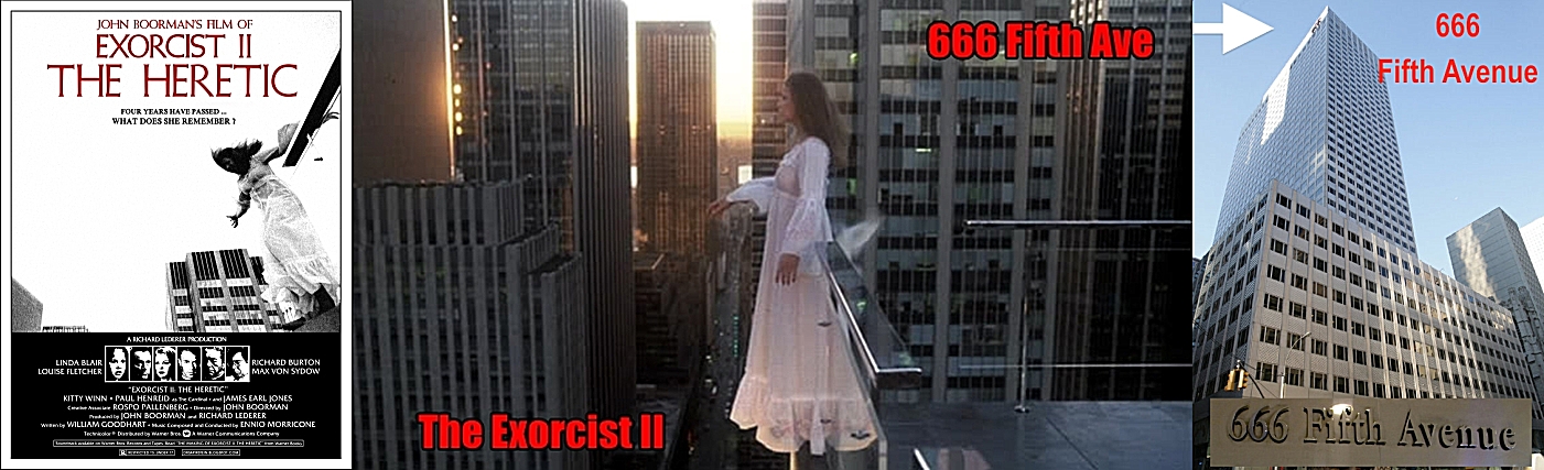 Exorcist 2 via 666 5th Ave. (Satanic/sodomite) Warner 'monarch' Bros. HQ was situated there at the time of filming.
