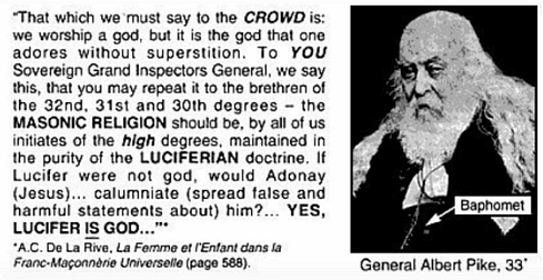 US Masonic '33' legend, Albert 'Lucifer is God' Pike.