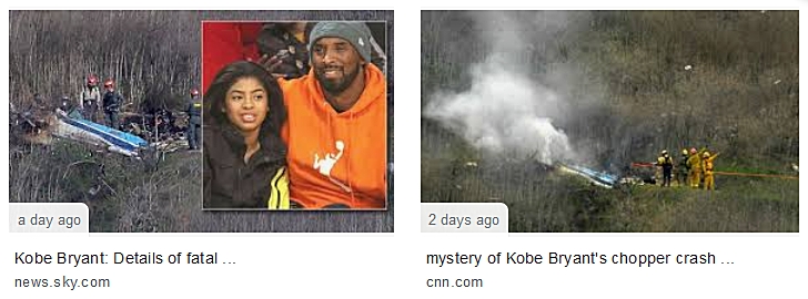 A strange mass media 'anomaly' - Bryant killed in a crashing/exploding helicopter (2016/2017).