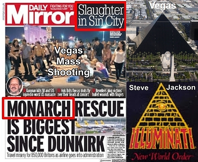 Trump (via snipers, see card text and pyramid Vegas) 'Enough is Enough' via Jackson's Illuminati Card Game.