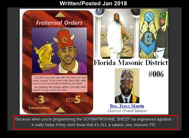 Florida, just like Tracy 'Florida Freemason' Martin. Florida's Bro. Martin who employed Florida Freemason, Bro. Crump.