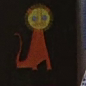 Lion (a representation of the sun via Leo, sun sign & element of fire) with a 'sun' head in Danny's bedroom.
