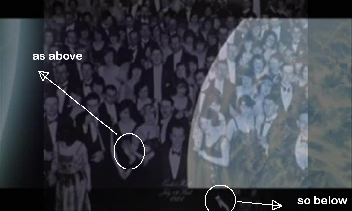 Ok let's keep this phrase in mind 'as above, so below' and look at the next picture(s) in the synch...as we close in on the photograph of Jack & the Ball and the 'starchild' hoves in from the left of the picture to 'overlook' planet Earth, ball like in appearance. (although technically it's an oblate spheroid...lol)  As above, so below...separate & join together.  In fact that's exactly what we're actually doing here...taking 2 separate endings and joining them together!