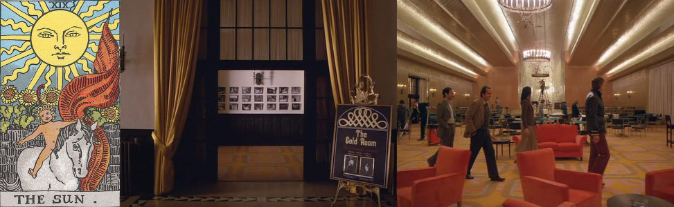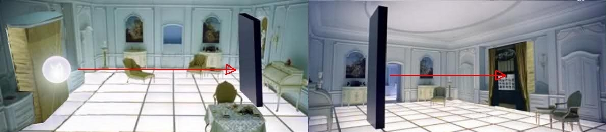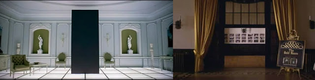 Note the 'monolith' like doorway and the candlesticks from each scene too. Also note the 'Gold Room' sign just before we pass thru and the statues either side of the monolith.
