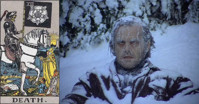 Remember...right before we sweep through the Overlook lobby (starting point) and experience Jack's rebirth...we see Jack dead and frozen.