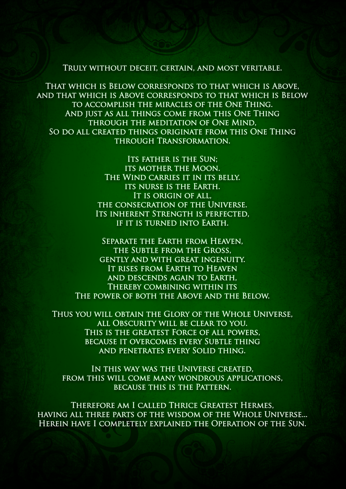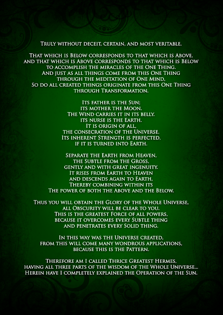 The Emerald Tablet of Thoth/Hermes/Ammon/Mercury etc