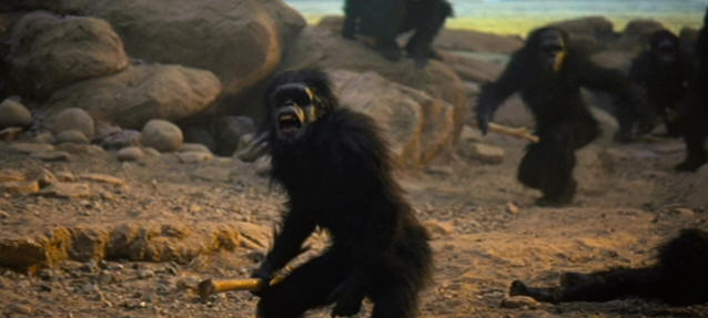 One 'ape' has a epiphany when he touches Hermes/Thoth/Monolith/Tablet and sees that 'as above, is so below'...signifying he has attained knowledge from Thoth/Hermes.
