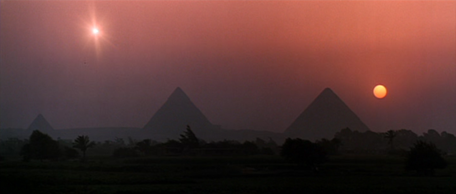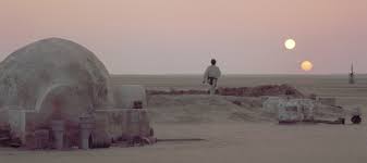 Binary sunset (twin sun) resonance in Lucas' original Star Wars (Tatooine or Tattoo-ing? An indelible copy...boom, boom). There was also '2nd sun' resonance at the climax of the more recent Interstellar.